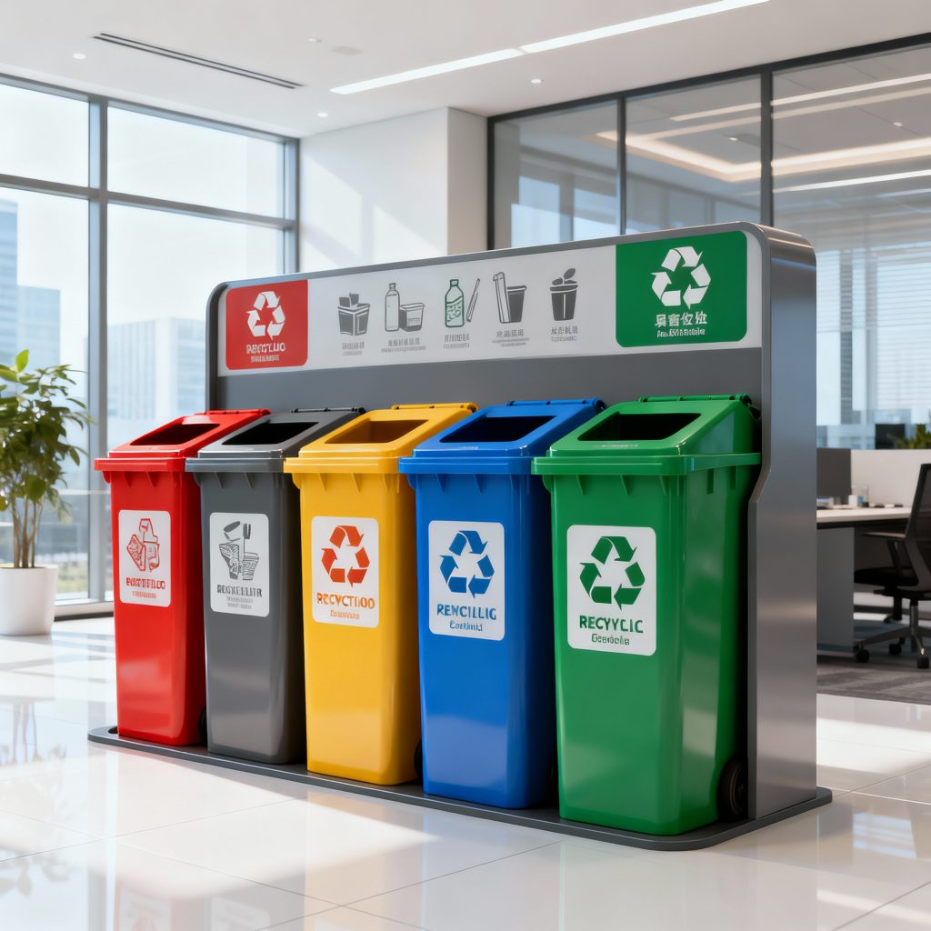 Implementamos estaciones de reciclaje adaptadas a los espacios de tu empresa, promoviendo la segregación y clasificación en origen.